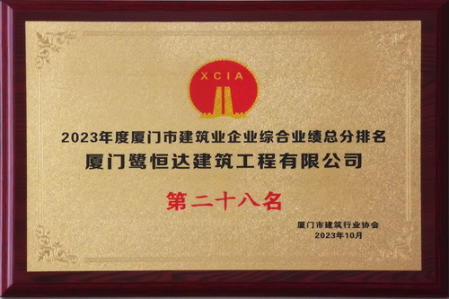 2023年度厦门市建筑业企业综合业绩总分排名第二十八名