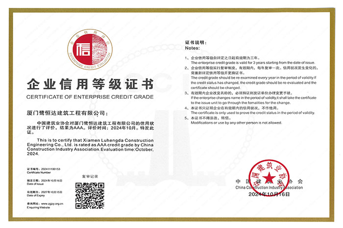全国建筑业AAA级信用企业证书